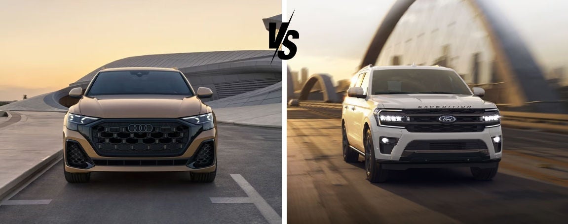 The Audi Q8’s 22-inch, available Black Optics Package, and Mythos Black finish give it a sleek, high-end appearance that commands attention effortlessly, thanks to its aggressive silhouette and distinctive Audi flair. Step inside to discover an elegant, comfortable interior crafted with premium Okapi Brown leather. The Ford Expedition responds with a robust and spacious design suited equally for everyday drives and adventures. Its muscular frame and broad stance exude confidence, while its interior offers ample space and flexibility. Customers can choose from a variety of premium options, with the Audi Q8 starting at $99,534* and the Expedition lineup ranging from $80,515* to $112,240*.